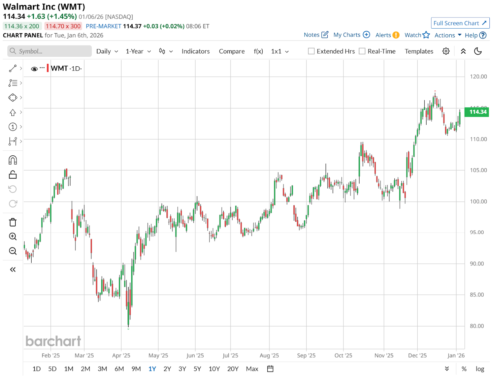 WMT stock is up 23% over the past 52 weeks and up 1.5% year-to-date (YTD), showing investors have continued to favor Walmart’s steady earnings and reliable cash flow in an uncertain market.