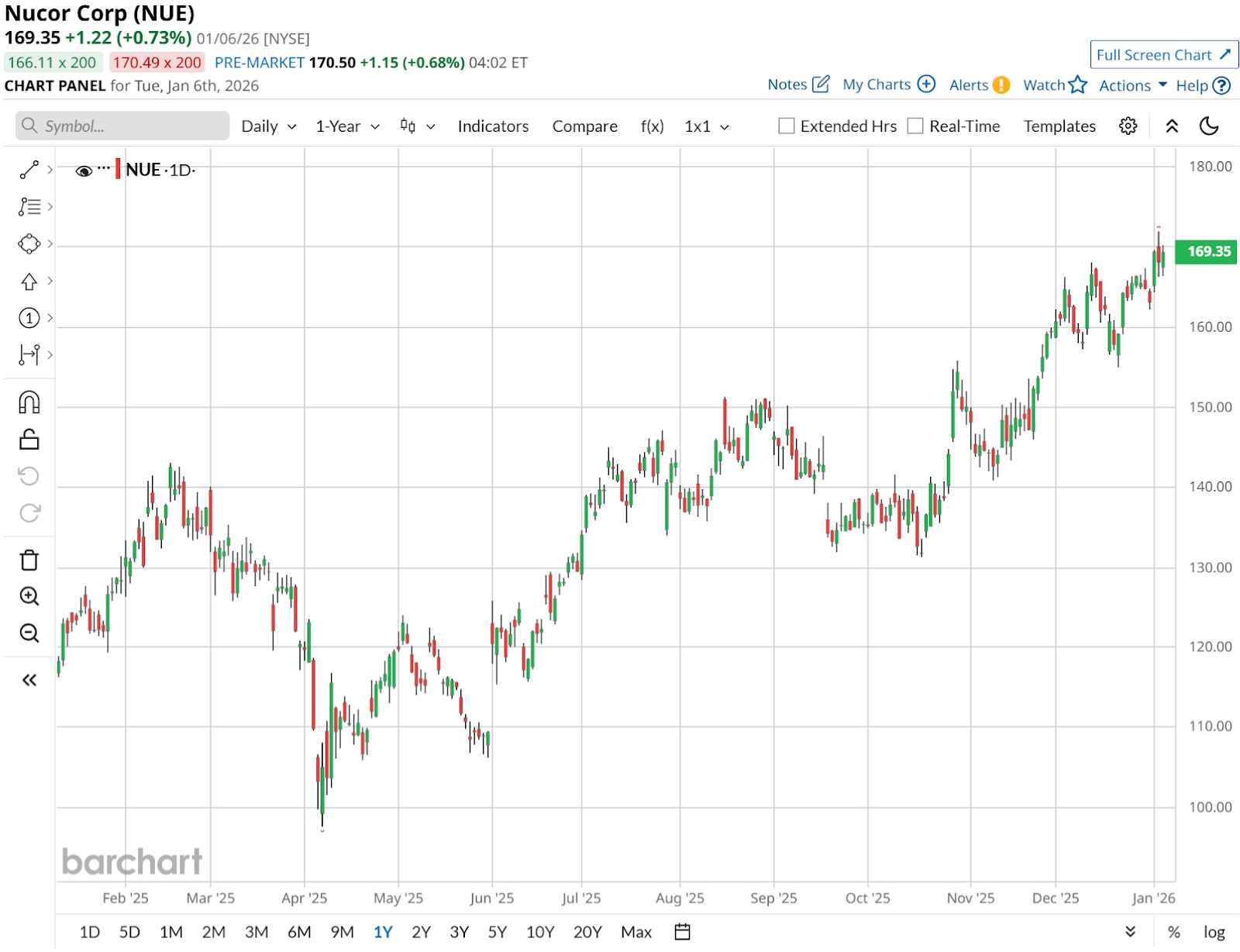 NUE stock is up 42% over the past 52 weeks and up 3% YTD, which shows investors have been leaning toward the idea of a stronger industrial cycle.