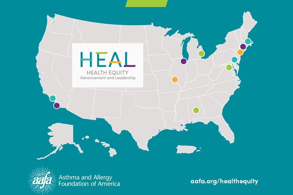The Asthma and Allergy Foundation of America’s (AAFA) Health Equity Advancement and Leadership (HEAL) program addresses health disparities in communities that bear the heaviest burden of asthma. Promoting health equity is a core value and mission-critical priority of AAFA. AAFA supports and works with local community organizations and groups including hospital systems, state asthma control programs, housing advocates and more across the nation. These programs serve disadvantaged populations who are at the highest risk of having asthma and needing emergency medical care.